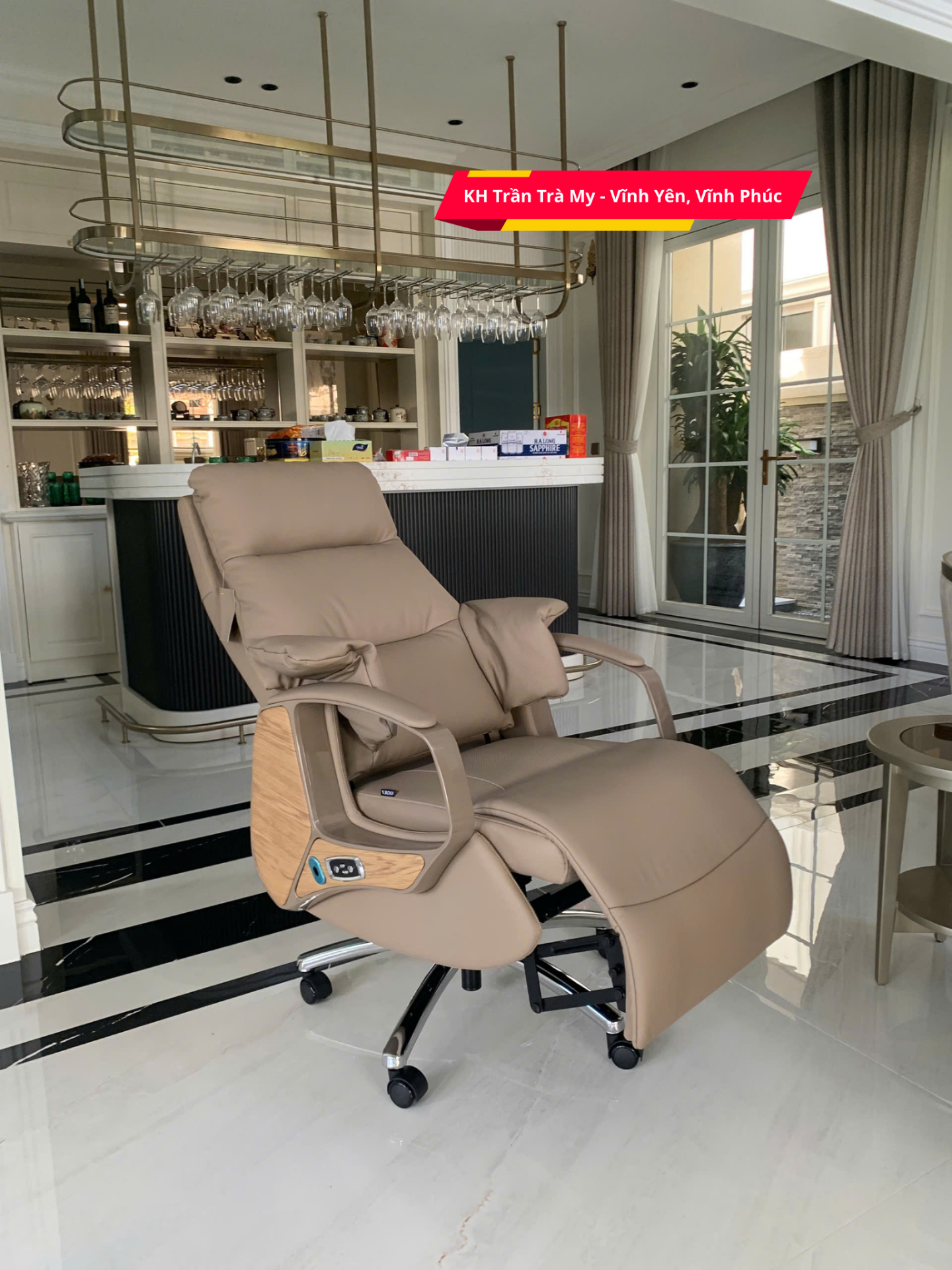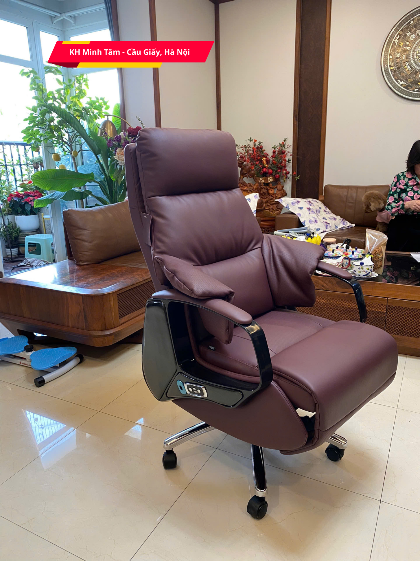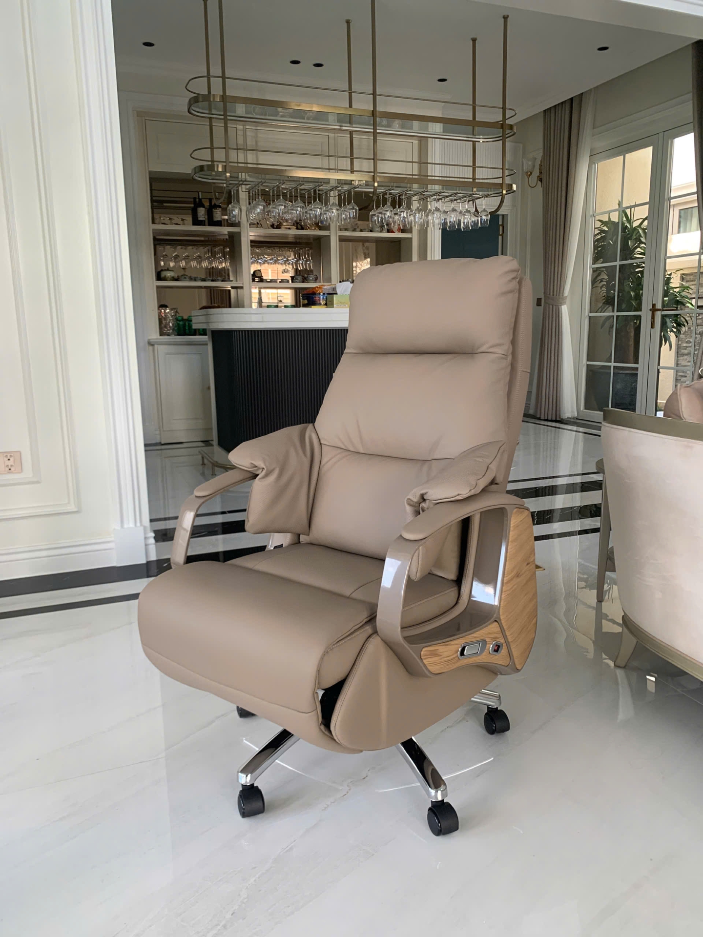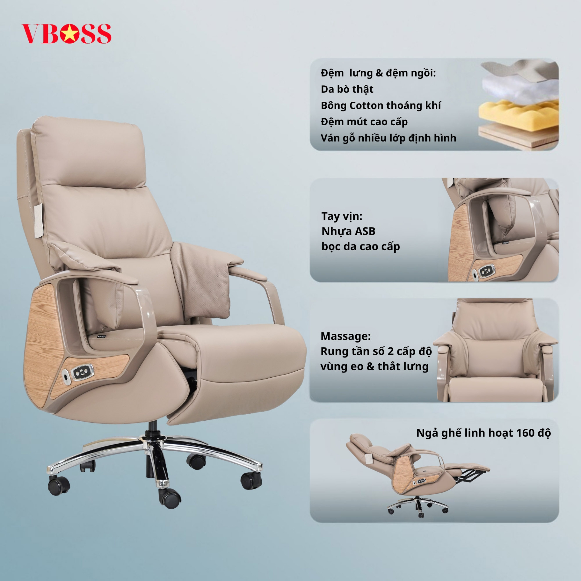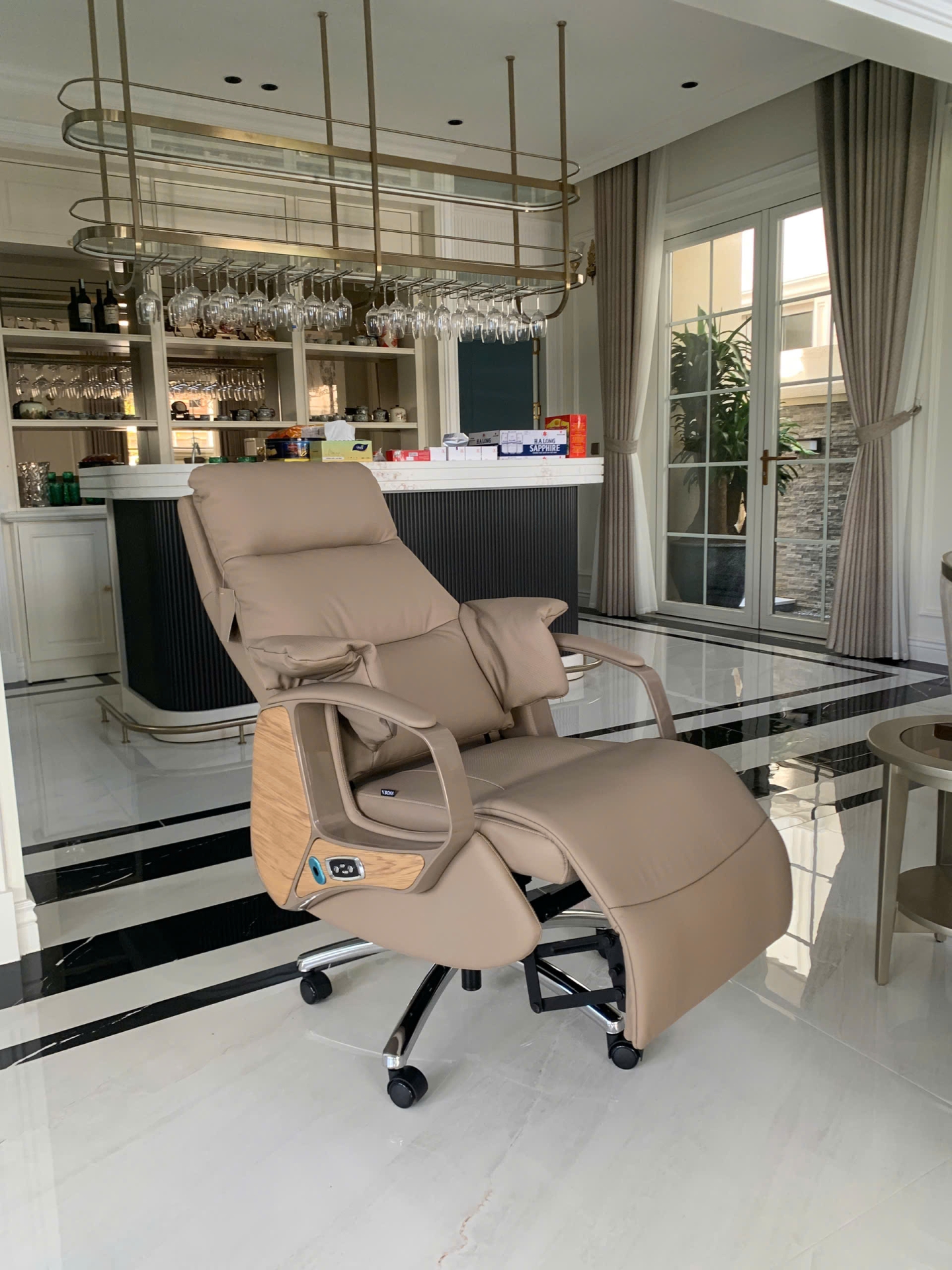 - Chất liệu: Da bò nguyên tấm - Top Grain, đệm mút và bông Cotton cao cấp. Tay vịn ABS cao cấp bọc da bò, chân ghế bằng hợp kim mạ điện.