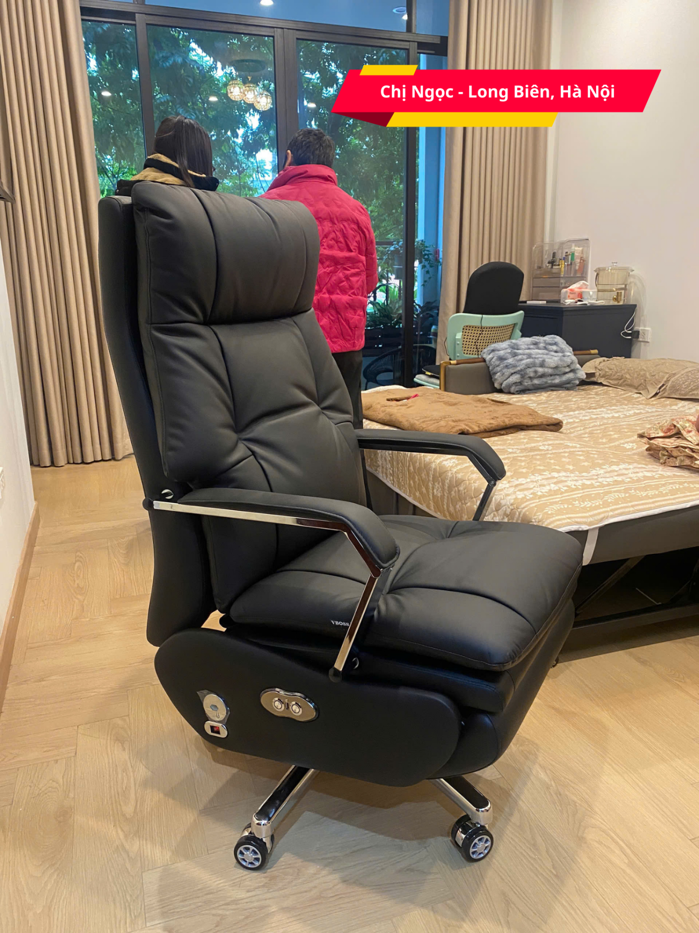 + Chỉnh điện tự động, ngả sâu đến 160 độ bằng nút bấm