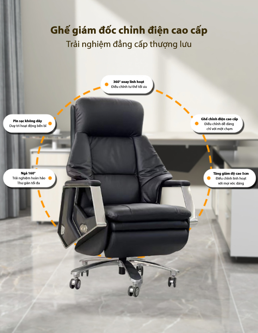 Trong không gian làm việc hiện đại, việc lựa chọn một chiếc ghế giám đốc không chỉ dừng lại ở tính năng tiện dụng, mà còn là biểu tượng của vị thế, phong cách và sự chuyên nghiệp. Ghế giám đốc chỉnh điện cao cấp Vboss chính là sự lựa chọn hoàn hảo để khẳng định đẳng cấp lãnh đạo, mang đến sự thoải mái tối đa và hỗ trợ sức khỏe người dùng vượt trội.